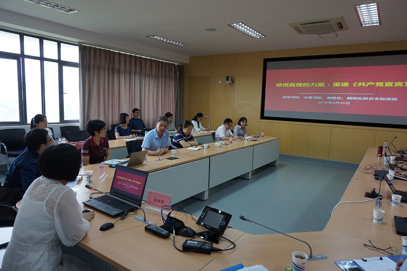 为纪念马克思诞辰200周年,缅怀其伟大人格和历史功绩,重温其崇高精神和光辉思想,深刻认识马克思主义思想对中国发展的重要指导意义,近日教务处、国资处、光华书院、大夏书院联合举行主题党支部活动,活动由国资处副处长、党支部书记汪奎主持。